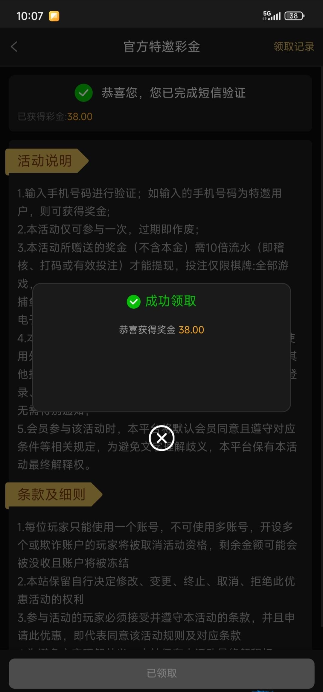手机号优惠自助短信验证领取38,出款自测